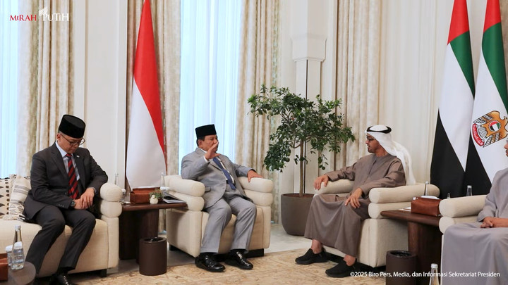 Setelah pertemua, Prabowo menyampaikan dirinya berkonsultasi dengan Presiden MBZ mengenai dinamika geopolitik terkini di kawasan termasuk Gaza.