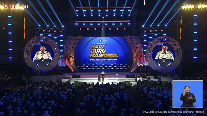 βCoba itu anak-anak yang ke sekolah harus nyeberang sungai tiap hari, tayangkan itu. Nah, ini mohon untuk dibangun kembali agar warga masyarakat bisa melewati jembatan ini,β kata Prabowo, di Puncak Hari Guru Nasional, di Indonesia Arena, Senayan, Jakarta, Jumat (28/11).