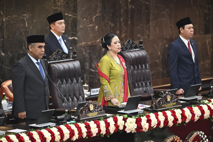 Ketua DPR RI Puan Maharani menyampaikan pidato dalam sidang tahunan MPR/DPR pada Jumat (15/8).