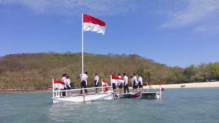 Momen Warga Desa Pantai Oa NTT Kibarkan Bendera Merah Putih di Atas Laut