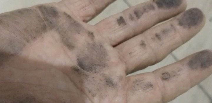 Ia menyebut beberapa minggu terakhir rumah-rumah warga penuh noda hitam. Bahkan telapak kaki warga yang berjalan di lantai rumah langsung menghitam seketika.