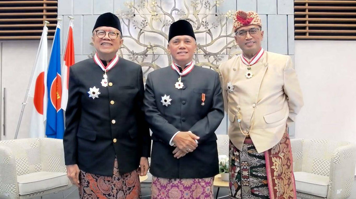 Ketiganya pun terlihat tampil mengalungkan tanda jasa itu dalam konferensi pers yang diselenggarakan oleh KBRI Tokyo, Rabu (6/11). Dalam kesempatan itu ketiganya membagikan pengalaman mereka sehingga mendapatkan tanda jasa tersebut.