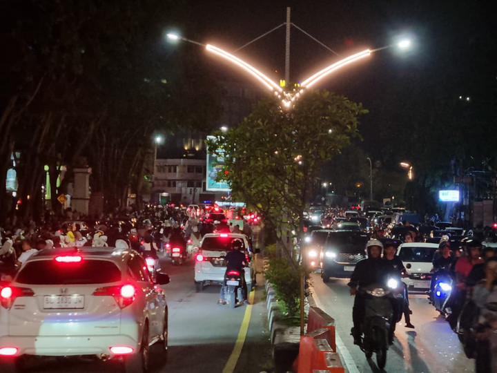 Pantauan di kawasan Bundaran Simpang Lima dan Jembatan Simpang Lima menunjukkan kendaraan roda dua dan roda empat terus lalu lalang hingga jelang tengah malam.