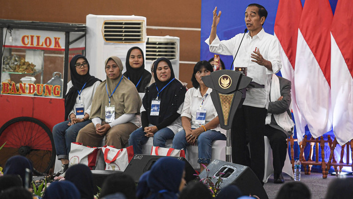 "Bu Alin, apa saran untuk ibu-ibu semuanya agar berjualan itu laku?" tanya Jokowi kepada Alin.