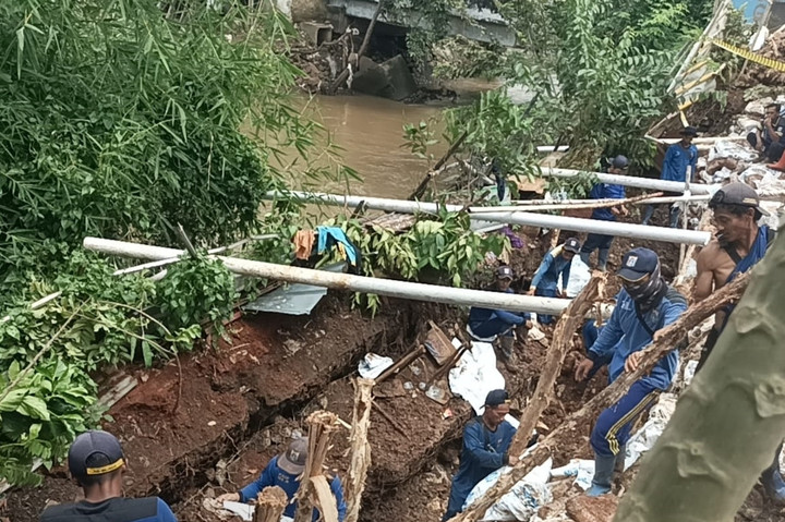 Tanah Longsor di Kembangan, Pasukan Biru Turun Tangan Pakai Tanggul Pasir-Tanah