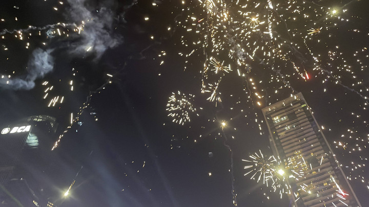 Dalam video yang beredar di media sosial, memperlihatkan sejumlah orang yang menggunakan kembang api dengan ricuh dalam aksi tersebut.