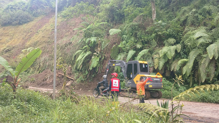 โHingga pukul 11.40 WIB, progres penanganan sudah mencapai sekitar 75 persen. Material longsoran sudah bisa dibersihkan dari badan jalan, dan arus lalu lintas sudah dapat dilalui kendaraan roda dua maupun roda empat dengan sistem buka tutup,โ pungkasnya.