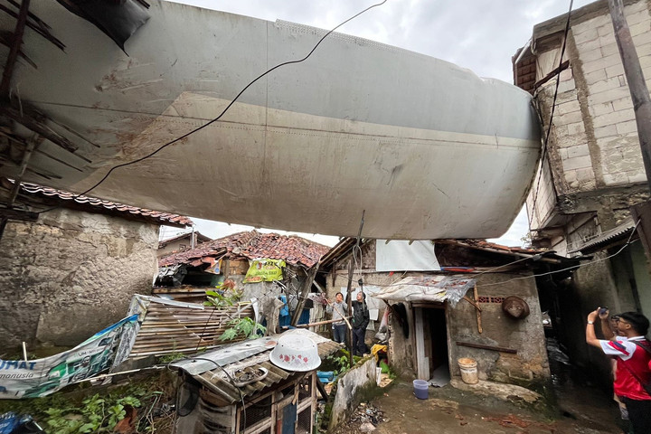"Bangkai pesawat yang kurang-lebih (berukuran) 300 meter terbang menimpa kepada rumah warga kami," kata Kades Pondok Udik, Sutisna, saat dikonfirmasi, Selasa (30/12).