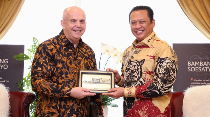Ketua MPR Bambang Soesatyo bertemu dengan Duta Besar Amerika Serikat untuk Indonesia, Joseph Donovan di ruang kerjanya hari ini, Senin (20/1). Dalam kesempatan itu, ia mengajak pemerintah AS untuk menjaga situasi dan kondusivitas keamanan di berbagai belahan dunia.