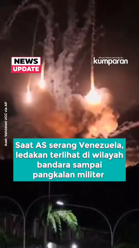Militer Amerika Serikat dilaporkan melancarkan serangan ke Venezuela pada Sabtu (3/1) dini hari waktu setempat, sebagaimana dikonfirmasi pejabat AS kepada Fox News. Sedikitnya tujuh ledakan terdengar di Caracas, sementara pesawat tempur AS terpantau terbang rendah sejak sekitar pukul 02.00. Seiring meningkatnya aktivitas militer, otoritas penerbangan AS menerbitkan larangan bagi seluruh pesawat AS untuk beroperasi di wilayah udara Venezuela. Operasi militer ini disebut menargetkan kapal-kapal yang diduga terlibat penyelundupan narkoba di kawasan Karibia dan Pasifik timur. Sebelumnya, Presiden Venezuela Nicolas Maduro menyatakan keterbukaan untuk bernegosiasi dengan AS di tengah tekanan militer terkait tuduhan jaringan perdagangan narkoba. šø: Dok. Validated UGC via AP, AP.