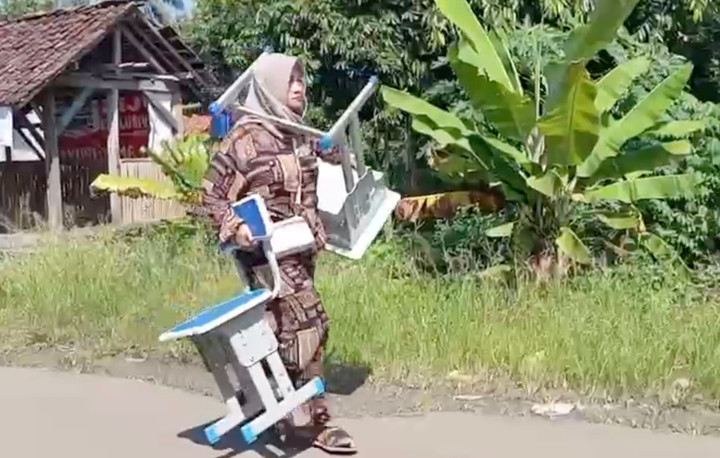 Viral video orang tua murid menggotong meja dan kursi seorang diri ke sebuah sekolah, lantaran diminta tanggung jawab usai anaknya dituduh merusak meja dan kursi.kumparanNEWS