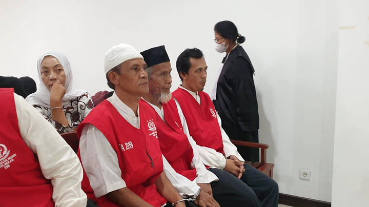 Wowon Erawan alias Aki, Solihin alias Dulo, dan M. Dede Solehuddin, hadir, duduk bersebelahan.