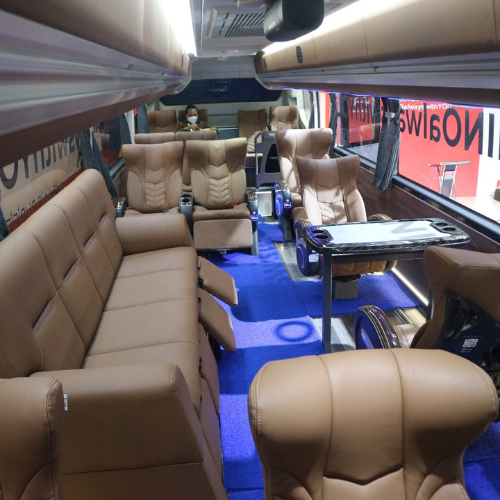 Nah di bagian interiornya dibuat bak kasta sultan, dengan konfigurasi kursi layaknya ruang tamu rumah. Bahkan bisa dipakai untuk suasana rapat.