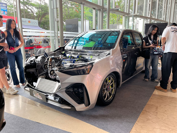 โUntuk pernak-pernik mesin saya sudah 90 persen billet (alumunium). Ini kami custom langsung dari Thailand, one of one khusus untuk mobil kami langsung,โ katanya.