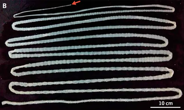 Cacing pita daging sapi sepanjang 6 meter ditemukan di perut seorang pria di China. kumparanSAINS