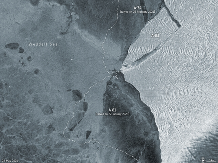 Gunung es pertama, A-74, pecah memisahkan diri dari lapisan es pada 2021. Sementara itu, gunung es yang lebih besar bernama A-81 pecah pada 2023.