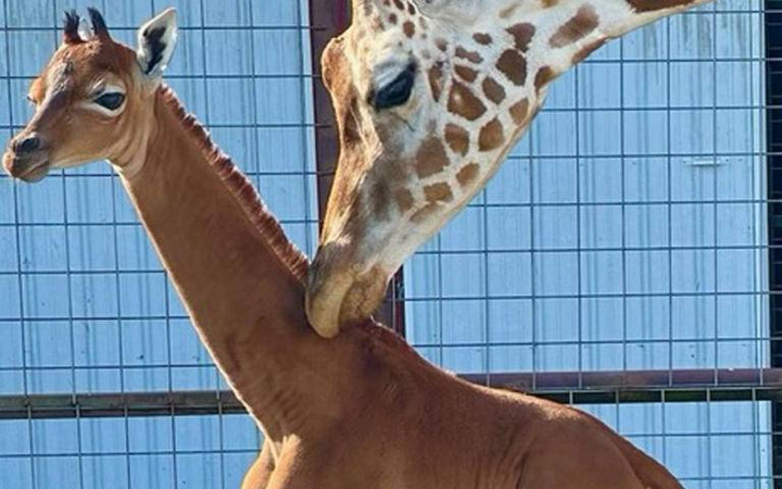 Jerapah tanpa bintik di tubuh mirip keledai lahir di sebuah kebun binatang di AS. kumparanSAINS