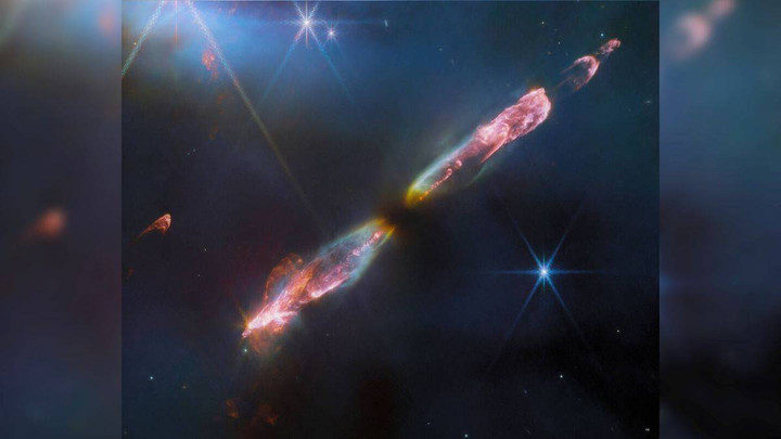 Teleskop Luar Angkasa James Webb berhasil mengabadikan penampakan bayi bintang mirip Matahari, berjarak 1.000 tahun cahaya dari Bumi. Bintang itu memuntahkan aliran gas dan debu supersonik ke luar angkasa.