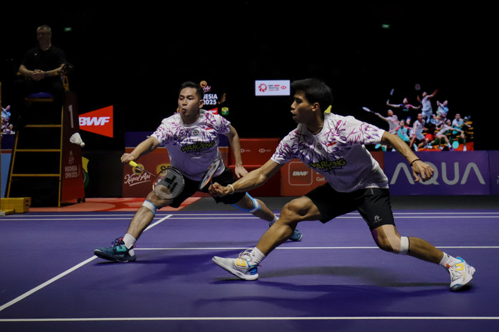 Bermain di Istora GBK, Sabar/Reza kalah dengan skor 21-18, 19-21, dan 12-21.