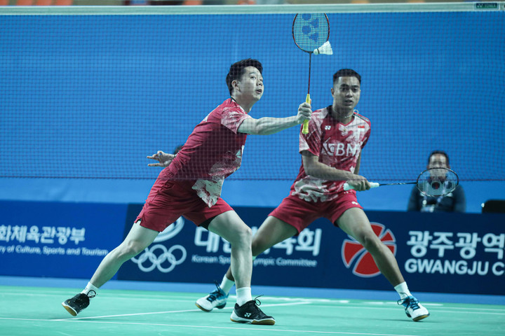 Kevin/Rahmat menghadapi pasangan Taiwan Lee Jhe-Huei/Yang Po-Hsuan di Gwangju Women's University Stadium, Gwangju, Korea Selatan, pada Kamis (9/11).
