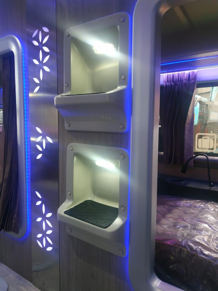Masing-masing jok pada bus ini dilengkapi dengan cup holder, lampu baca, AC individual, USB charger, selimut, dan bantal yang membuat perjalanan makin tak terasa.