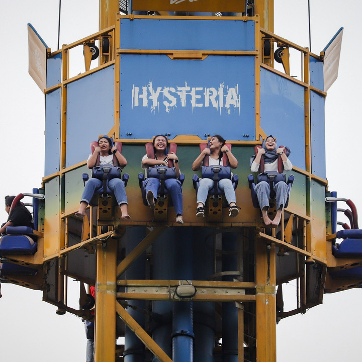 Suasana penuh keceriaan dari para pengunjung saat mencoba berbagai wahana permainan di Dufan.kumparanTRAVEL