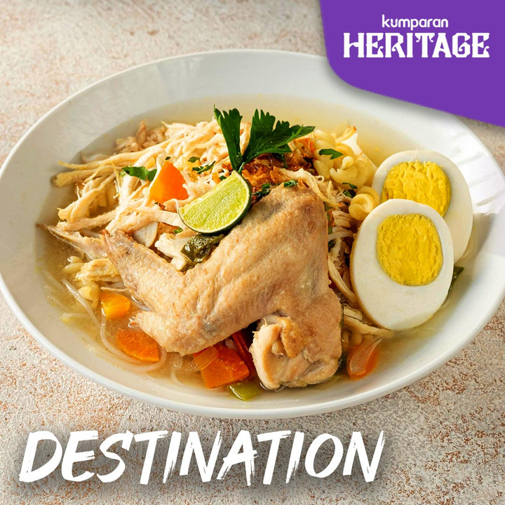 Soto Banjar berisi aneka bahan, seperti bihun, telur rebus, ayam kampung, serta taburan bawang goreng yang nikmat.kumparanTRAVEL