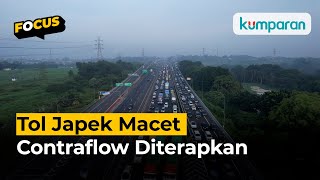 Kendaraan tampak merayap di Tol Japek KM 39 dan KM 48, contraflow mulai diberlakukan di KM 47. #focus #mudik2024 #newsflashkumparan Video