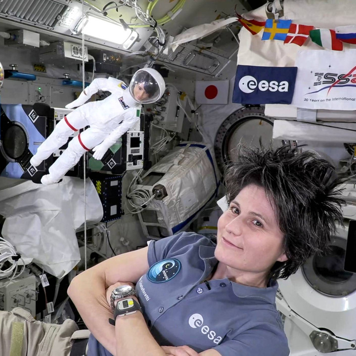 Cristoforetti baru-baru ini meluangkan waktu untuk menjelaskan beberapa eksperimen yang dilakukan di atas ISS. Dia dan Barbie-nya yang mengenakan pakaian antariksa melayang dalam gravitasi nol.