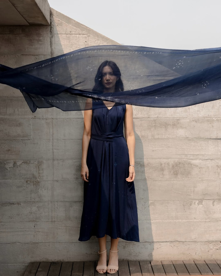 โYang satu itu kain tenun kita yang memang dari bahan kapas. Jadi, kita tenun sendiri. Dan kalau misalnya untuk (desain) yang lebih siluet, yang lebih feminin kita pake tencel,โ papar Anastasia.