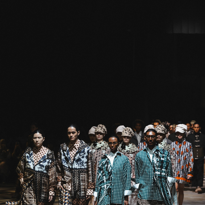 Fashion show ini kian menarik karena sebagian busana diperagakan oleh dua model sekaligus. Ini jadi penanda bahwa koleksi Reforged adalah unisex, alias bisa dikenakan oleh laki-laki dan perempuan.