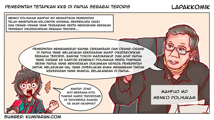 Pemerintah menetapkan Kelompok Kriminal Bersenjata (KKB) di Papua dan orang-orang yang tergabung serta mendukung gerakan tersebut sebagai teroris. #userstory dari Lapak KomikLapak Komik