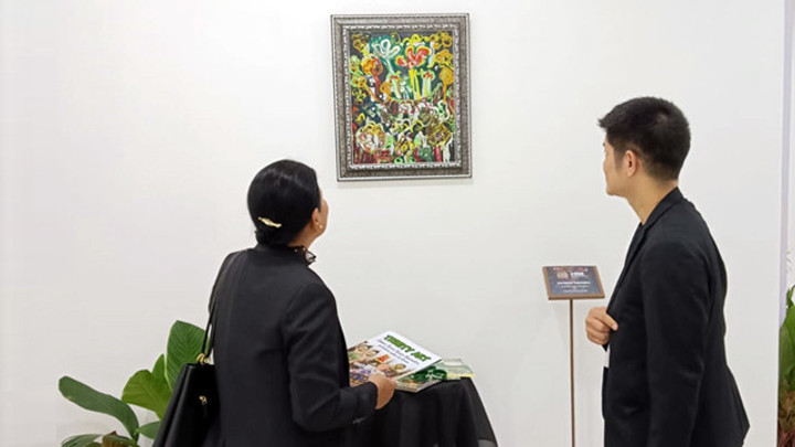 β"Lukisan Go Green Taruparwa ini menjadi yang pertama saya pamerkan di event Internasional," ujar Sam Sianata.