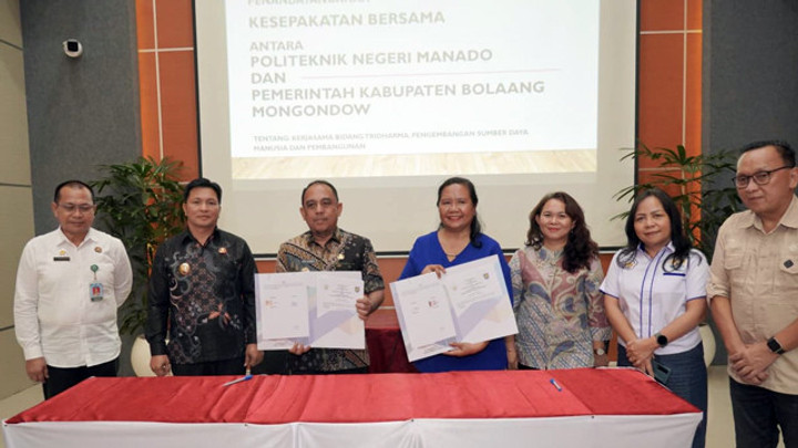 MANADO - Pemerintah Kabupaten (Pemkab) Bolaang Mongondow (Bolmong) secara resmi menjalin kerja sama dengan Politeknik Negeri Manado, untuk meningkatkan kualitas Sumber Daya Manusia (SDM) di daerah. Penandatanganan kesepakatan digelar di Auditorium Politeknik Negeri, Rabu (20/8).