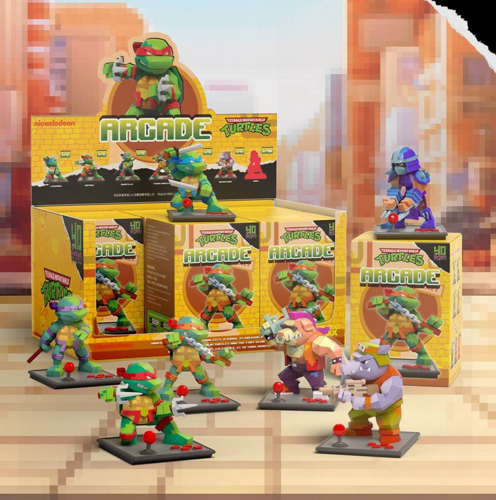 Mighty Jaxx Teenage Mutant Ninja Turtle (TMNT) seri Arcade ini dirancang dengan gaya low-poly yang memukau, untuk menghidupkan kembali nostalgia game arcade klasik yang seru. Selain empat karakter TMNT yaitu Leonardo, Donatello, Raphael dan Michelangelo; ada juga karakter musuh bebuyutan mereka seperti Bebop, Rocksteady, dan Shredder yang legendaris!