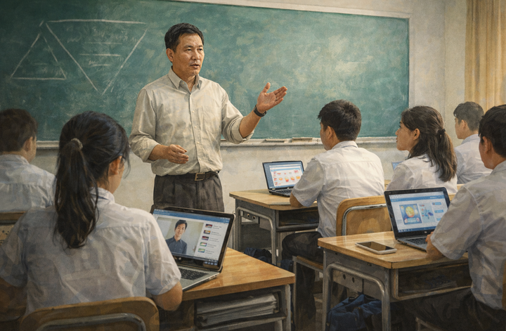 Beberapa tahun terakhir, ruang kelas berubah wajah. Papan tulis tetap ada; kapur tak sepenuhnya pergi, ia kini berbagi ruang dengan spidol, lalu disusul layar, aplikasi, dan tombol “klik”. Guru diminta adaptif, inovatif, dan—ini yang jarang tertulis—tidak terlalu banyak bicara.