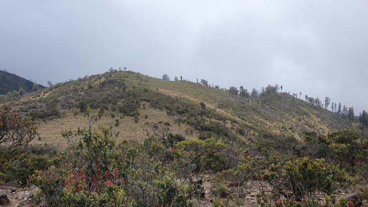 Perjalanan dari Pos 2 ke Pos 3 akhrinya saya barengan bersama mereka. Karena masih sedikit canggung, tidak banyak perbincangan di antara kami. Perjalanan menuju Pos 3 cukup berat, medan terjal dan terus menanjak hampir tidak ada bonus (jalur landai). Kemudian kabut juga mulai turun sehingga jarak pandang berkurang. Meski begitu, saya sama sekali tidak khawatir karena kali ini ada enam orang yang menemani perjalanan menuju Gupak.