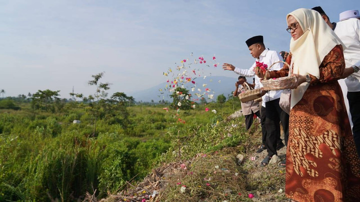 Wali Kota Palu Hadianto Rasyid berziarah dan tabur bunga untuk mengenang 5 tahun bencana alam Gempa, Tsunami, dan Likuefaksi yang terjadi di Kota Palu pada 2018.