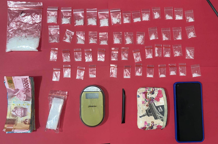 "Turut diamankan juga 1(satu) bungkus plastik klip kosong, 1 unit timbangan digital, 1 buah dompet kecil, 1 buah sendok terbuat dari pipet warna hitam, 1 unit hp merk Oppo warna biru, uang tunai Rp 1.256.000," kata Barliansyah. *(Rian)