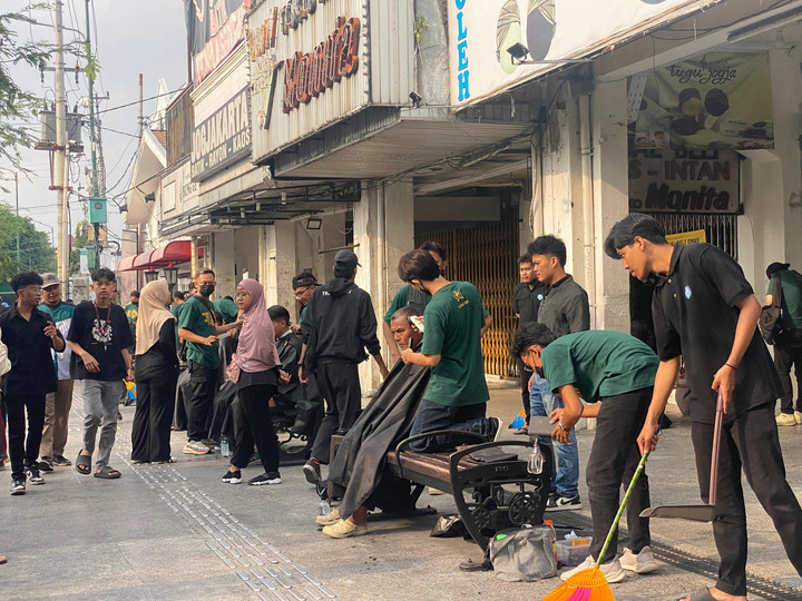 Kegiatan ini berlangsung sejak pukul 06.00 WIB hingga 07.30 WIB yang diinisiasi oleh Arfa Barbershop, salah satu barbershop di Yogyakarta. Para peserta juga dapat meminta model rambut sesuai yang mereka inginkan.