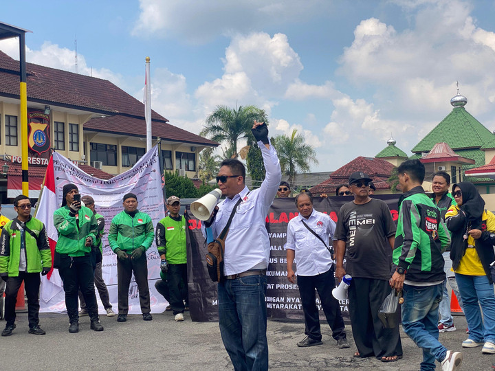 Aksi Solidaritas Ojol Jogja Tuntut Pembegal Ojol di Sleman Dihukum Mati