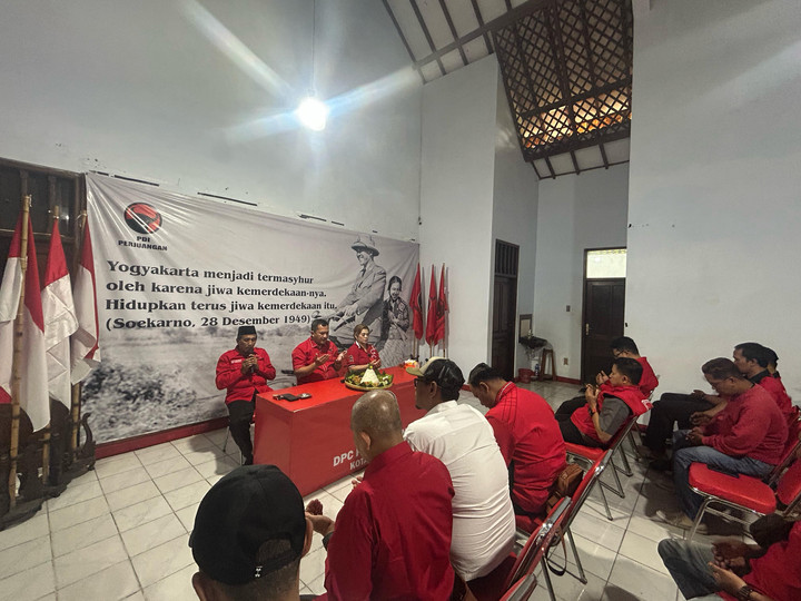 Doa bersama dilakukan oleh pengurus DPC PDI Perjuangan Yogyakarta di kantor cabang yang dilanjutkan potong tumpeng. #publisherstory #pandanganjogja Pandangan Jogja