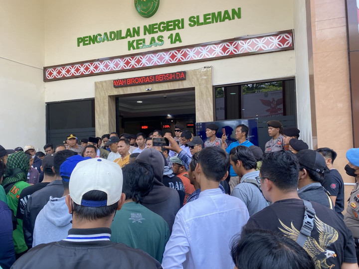 Sekitar 100-an massa menunggu jalannya sidang di area PN Sleman. Mereka menyatakan kecewa karena terdakwa tidak dihadirkan langsung. Salah satu massa, Muhammad Yazid, menyebut kedatangan mereka bertujuan mengawal proses hukum secara damai.
