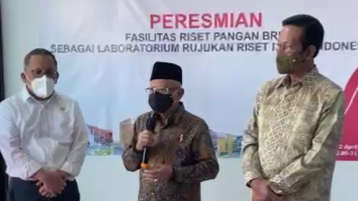 Wakil Presiden, Ma’ruf Amin, datang ke Gunungkidul, Daerah Istimewa Yogyakarta (DIY) untuk meresmikan fasilitas riset pangan Badan Riset dan Inovasi Nasional (BRIN) yang akan menjadi laboratorium rujukan riset halal di Indonesia. Selain untuk mendorong pemenuhan kebutuhan produk halal dalam negeri yang semakin besar, fasilitas riset ini juga bertujuan untuk mendorong ekspor produk halal ke luar negeri.