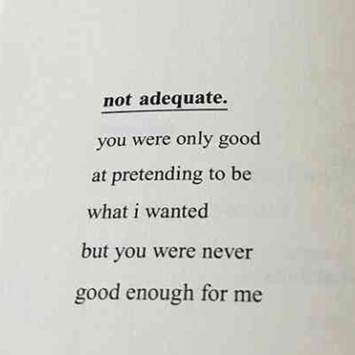 You were only good at pretending to be what I wanted but you were never good enough for me