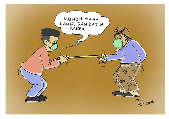 Hari lebaran identik dengan tradisi bersalaman dan bermaaf-maafan bagi masyarakat Indonesia, namun pandemi Covid-19 membuat tradisi tersebut harus dihindari.Rangga Bijak Aditya