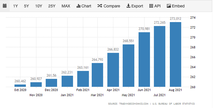 Kalau kita pernah mendengar informasi dari orang tua kita, dahulu tanah per-meter 2000 perak dan sekarang nilainya 200.000 perak. Maka fenomena ini bukan kenaikan harga, sebaliknya jumlah mata uang beredar yang berlebihan. Fenomena ini adalah fenomena yang memiskinkan kaum pekerja. Karena proses penggajian yang bersifat tetap dan tidak mengikut koreksi inflasi. Selain itu, fenomena ini tidak saja mengancam publik tapi juga menciptakan ketidakpastian pada kondisi ekonomi di masa datang. Secara sosial tentu akan meningkatkan rasa tidak aman pada individu. berikut bagan Indeks harga konsumen Indonesia yang diambil dari https://tradingeconomics.com/: