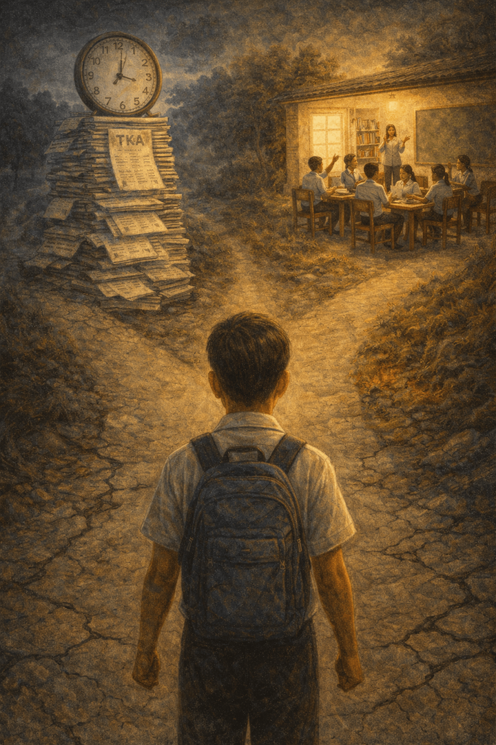 Bayangkan anak-anak kita yang baru saja menginjak bangku kelas X SMA. Sejak hari pertama, mereka sudah dihantui oleh bayang-bayang TKA yang nilainya akan menentukan nasib mereka di universitas. Portofolio, nilai rapor, indeks sekolah, dan kini TKA; semuanya bertumpuk di pundak mereka yang masih belia. Kita sedang menciptakan generasi yang belajar karena takut akan masa depan, bukan karena cinta pada ilmu pengetahuan.