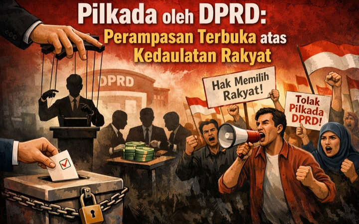 Wacana mengembalikan mekanisme pemilihan kepala daerah (pilkada) melalui DPRD kembali mencuat dalam perdebatan publik. Dalih yang digunakan hampir selalu sama: pilkada langsung dianggap mahal, rawan konflik, dan tidak efisien. Namun, argumen tersebut menutupi persoalan yang jauh lebih mendasar, yakni hilangnya hak rakyat untuk menentukan pemimpinnya sendiri. Pilkada oleh DPRD bukan sekadar perubahan prosedur, melainkan bentuk perampasan kedaulatan rakyat secara terbuka dan sistematis.