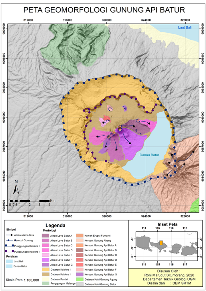 Sutawidjaja I S, Chaniago R, Kamal S, 1992. Geologic map of Batur caldera, Bali, Indonesia. Volc Surv Indonesia, 1:50,000.